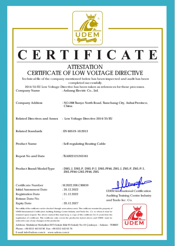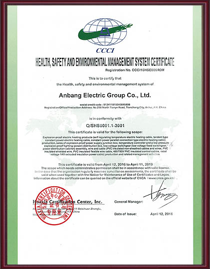 安邦電氣股份有限公司,總部位于北京市長安街,成立于2004年,注冊資金10088萬。安徽生產(chǎn)基地占地面積63000平方米,擁有66套各類生產(chǎn)線,其中進口生產(chǎn)線6套。國家高新技術型企業(yè),滁州市市長質量獎企業(yè),專精特新“小巨人”企業(yè),擁有國家知識產(chǎn)權局授權的45項專利,其中發(fā)明專利28項 , 主筆《太陽能熱利用自限溫電熱帶安裝規(guī)范》行業(yè)標準,參編《自限溫電伴熱帶》國家標準、《工業(yè)和商業(yè)用電阻式伴熱系統(tǒng)》國家標準、《太陽能熱利用自限溫電熱帶》行業(yè)標準、《爆炸性環(huán)境 電阻式伴熱器》國家標準等7項國家標準。企業(yè)通過UL認證,國家強制性 CCC產(chǎn)品認證,ISO9001質量管理體系認證,ISO14001環(huán)境管理體系認證,ISO45001職業(yè)健康安全管理體系認證,Q/SHS0001.1健康、安全與環(huán)境管理體系認證,歐盟防爆ATEX認證,歐盟CE認證,RoHS認證,俄羅斯海關聯(lián)盟認證,國家防爆電氣CCC證書。產(chǎn)品系列:集膚伴熱系統(tǒng)、電伴熱系統(tǒng)、電加熱器、電地暖系統(tǒng)、集儀器儀表、電線電纜、高低壓配電柜(箱)、電纜橋架、閥門管件等等設計、制造、銷售。產(chǎn)品應用于航天航空、軍工、石油、石化、天然氣、機場、化工、鋼鐵、隧道、消防、養(yǎng)殖、融雪化冰、室內供暖、國家電網(wǎng)及眾多電廠等等國家重點工程。出口美國、英國、德國、俄羅斯、韓國、日本、哈薩克斯坦、烏克蘭、伊朗等眾多國家。